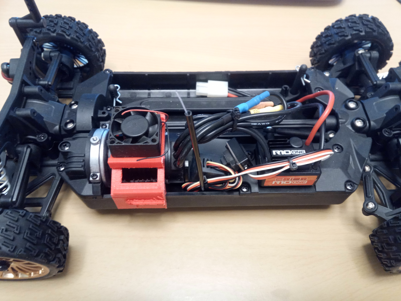 Motor cooling fan mount for Kyosho Fazer and Fazer VE-X. Supports 3cm x 3cm fan.