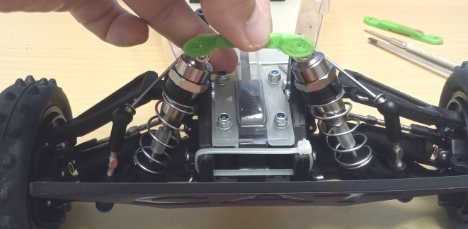 This is a front shock mount reinforcement brace for the Schmacher Cat XLS Masami.