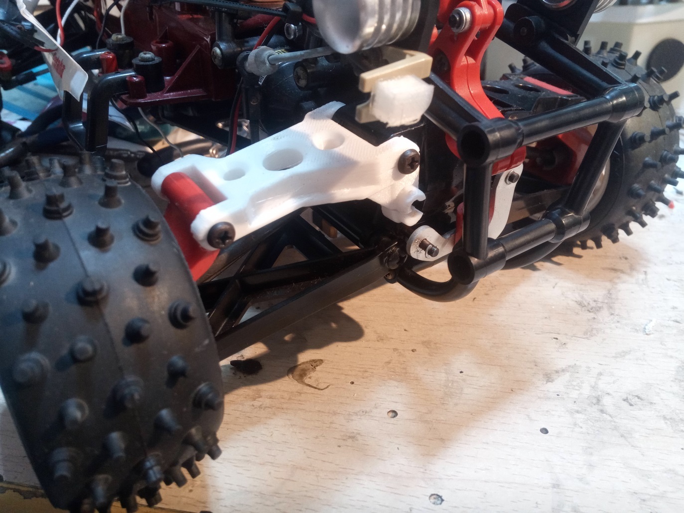 Still, when the design has stress constantly imposed on the parts, PLA may fail to hold up (time to consider ABS or Nylon instead). Simply put, 3d printed part using PLA has its limit in strength. As can be seen in this example configuration involving a rear suspension system, when pressure is constantly imposed on the part PLA just wouldn’t hold up even with 100% fill. This is both a design issue and a material issue. The original kit uses ABS and things start to crack when aged. A PLA replacement, however, fails real quick upon the first trial run. Unless you change the design, chance is that PLA will keep failing.