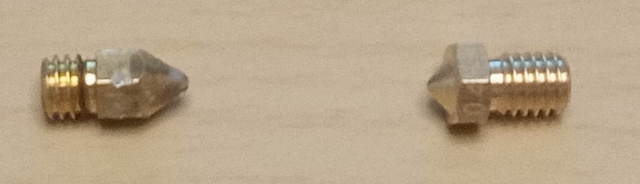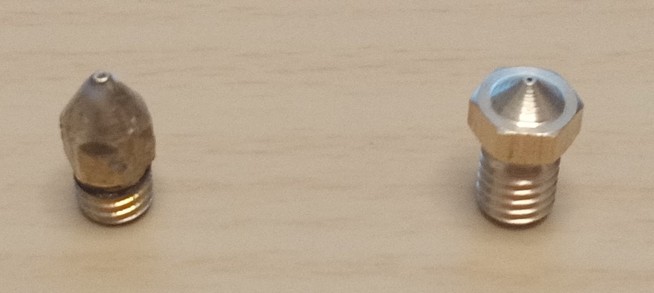 The two most common nozzle types for 1.75 filament are MK8 and E3D V6. They both use M6 threading size. They do have different thread/overall length. Refer to the photos below, on the left you will find the MK8 while on the right you will see the V6: