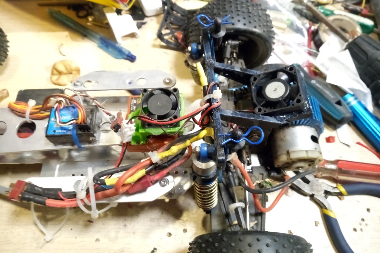 The rear placement of the motor makes natural air cooling ineffective. It is therefore important for you to provide cooling to it via a fan. When the motor is placed at the rear end behind the rear axle, cooling by natural airflow is difficult since wind is blocked by the chassis. You will want to use a custom mount to host a fan and keep the motor cool at all time.