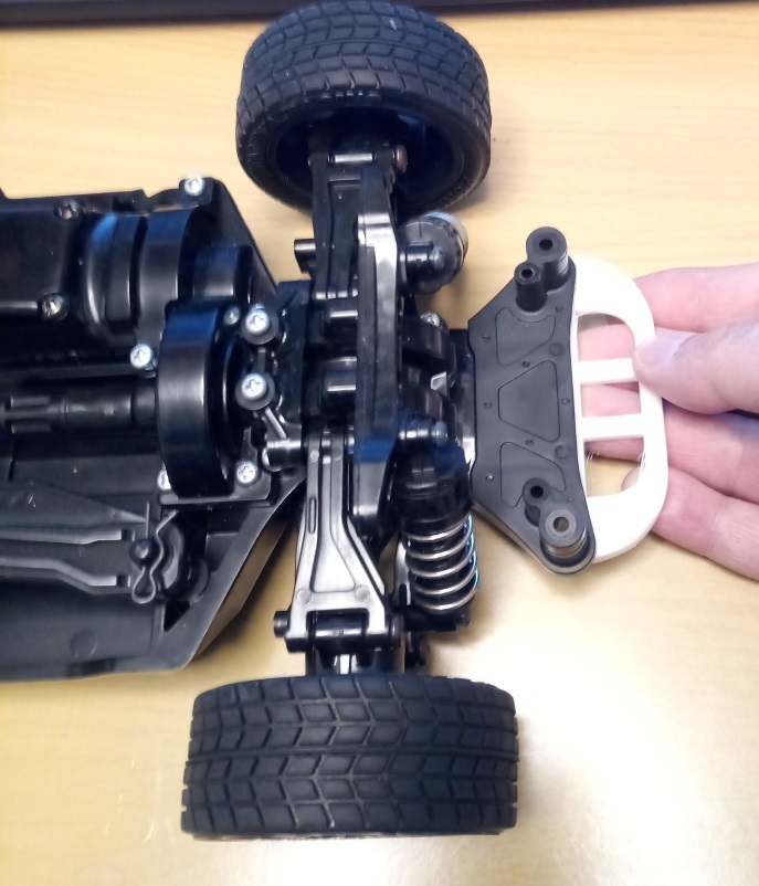 Rear addon bumper for Tamiya TT02. You can mount it top down or bottom up using screws and nuts.