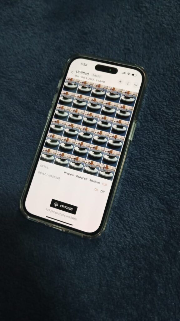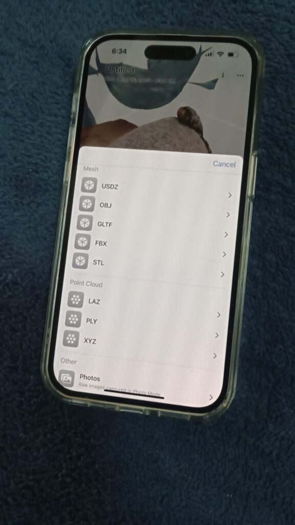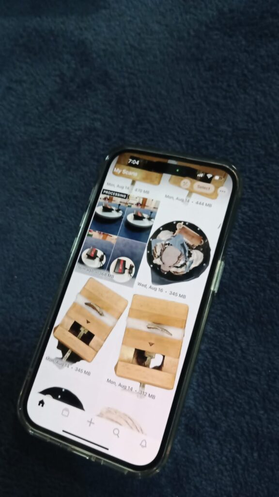 Capture Scans: To begin scanning, follow the app’s instructions. Typically, you’ll need to move your iPhone around the object or scene you want to scan while capturing multiple images. Some apps may use structured light or photogrammetry techniques to create the 3D model. In our case we rotate the object, not our phone, but from three different angles.