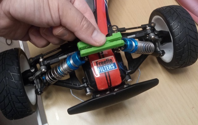 This is a reinforcement brace for the Tamiya Boomerang. You use it at the front…